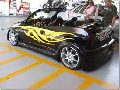 A conversão para conversível parece ter ficado boa, mas sobre o tuning, melhor nem discutir, afinal gosto não se discute mesmo! Só sei que esse aí não perde a hora, com tantos relógios!
